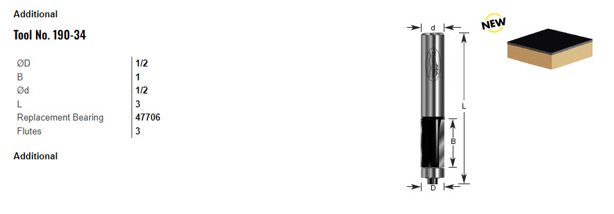BROCA PARA ROUTER RECORTE 1/2 X 1/2 TIMBERLINE 190-34