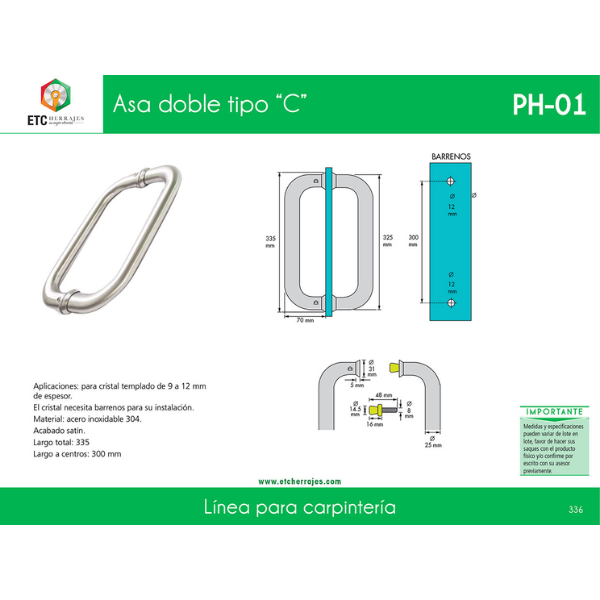 Asa Doble Tipo ‘C’ Acero Inox Mod. PH-01 32.5 cm ETC