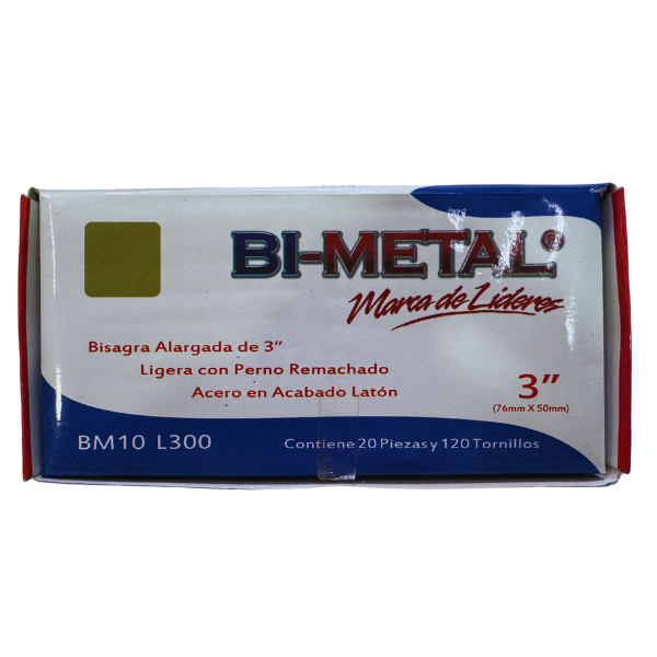 Bisagra Alargada Bimetal 3“ x 2″ Latón (caja 20 pzas)